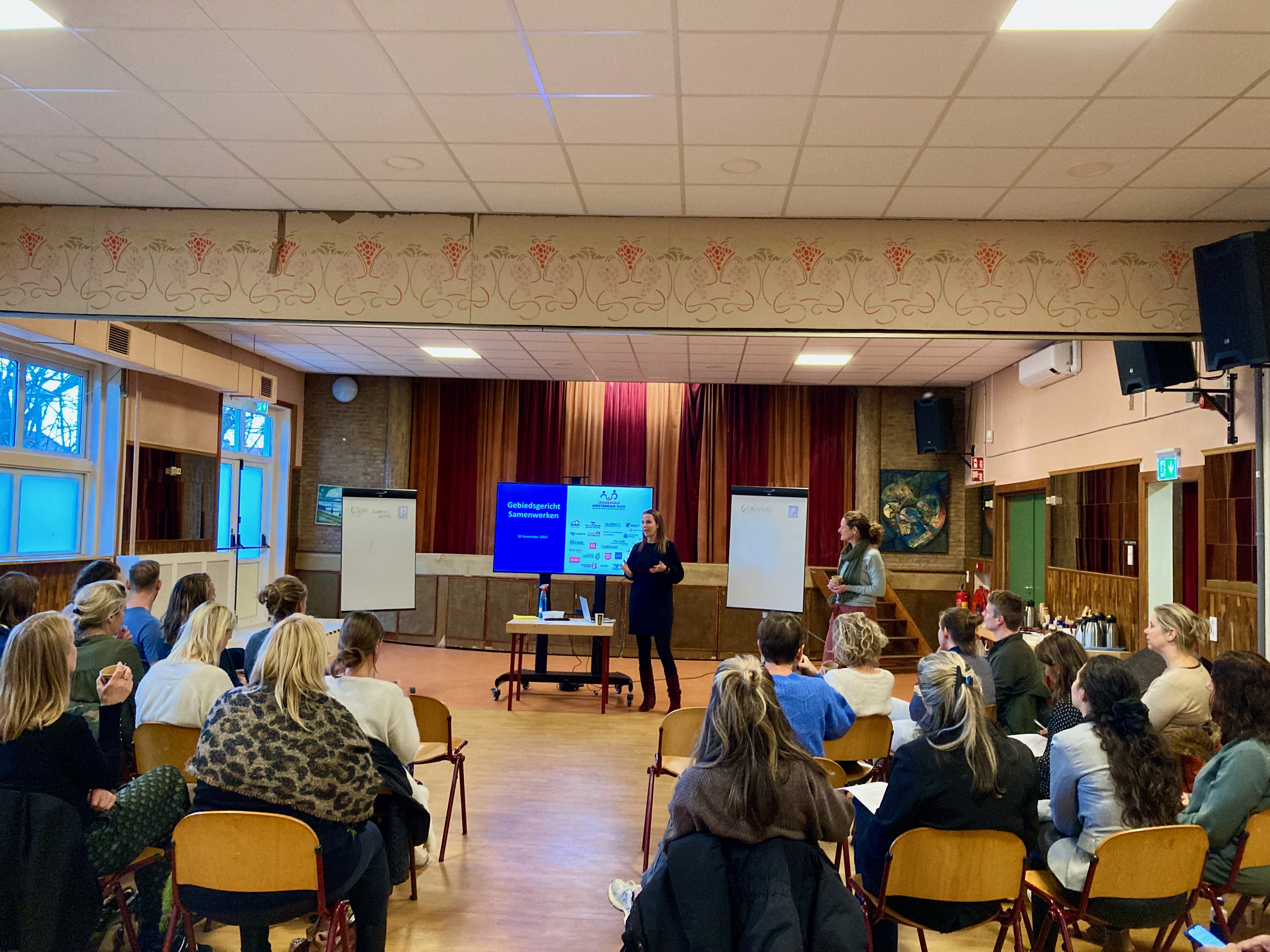 Kwartiermakers binnen het Gebiedsgericht Samenwerken Lonneke op der Heijde en Maartje Goudriaan trapten af met een welkom en korte toelichting op de huidige stand van zaken. Zo werden de ESJH-collega’s meegenomen in de bedoeling en samenwerkwijze en werd ‘de cockpit’ als samenwerkingsoverleg in ieder gebied geïntroduceerd. Ook werd de Aanpak Wachtenden met daarin de Amsterdamse Maatwerk Methode (AMM) kort toegelicht. Mariëlle Beckers van Buro Bloei stak haar enthousiasme niet onder stoelen of banken hierover. “Als kleine ESJH-aanbieder zijn wij al jaren gericht op onderlinge samenwerking, simpelweg omdat we zelf vaak te klein zijn om alles op te pakken. Dan levert bijvoorbeeld Arkin of Levvel een regie-behandelaar en kunnen we toch aan de slag. Fijn dat we dat nu in de volle breedte gaan doen”.