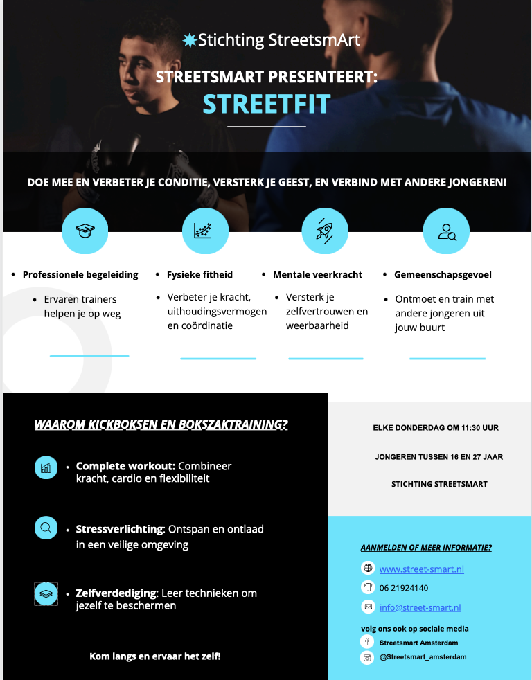 Veel jongeren tussen 16-24 jaar hebben moeite met het leven. Zij missen sociale contacten en missen (gezonde) bezigheden in de vrije tijd. Sport is een middel om met jongeren in contact te komen. De organisaties StreetsmArt en MousidGym werken in Oost sinds februari 2021 samen om contact te maken met de doelgroep 16-24 jarigen via sport om vandaar uit met hun vragen aan de slag te gaan.